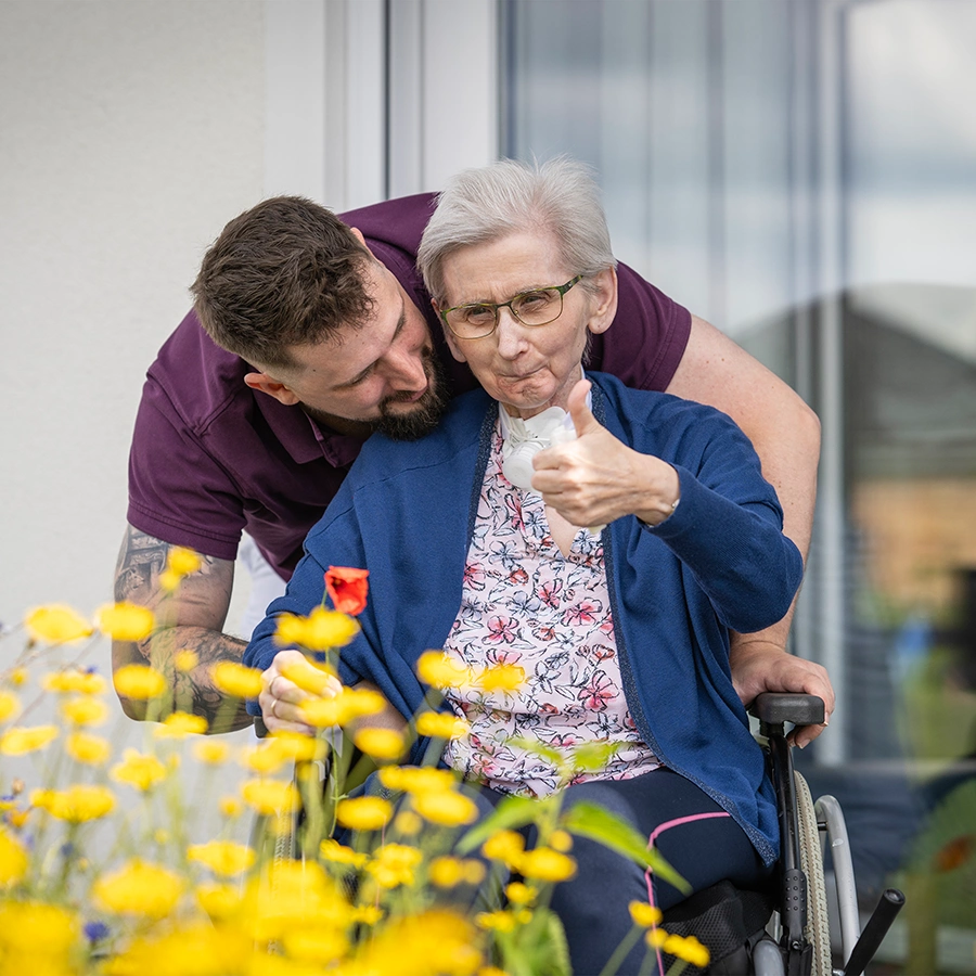 Im Gegensatz zu stationären Pflegeeinrichtungen können wir mit der Wohnform der Hausgemeinschaft einen wesentlich höheren Personaleinsatz bieten. Dadurch lassen sich die pflegerischen und hauswirtschaftlichen Leistungen besser und individueller gestalten. Unseren Pflegekräften bleibt deshalb auch ausreichend Zeit für die Unterstützung bei den täglichen Aufgaben und für persönliche Wünsche und Aktivitäten der Bewohner*innen.